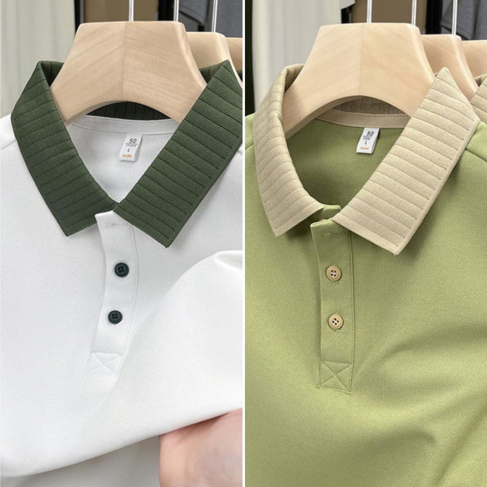 Luxury Quality Solid Color Polo Shirt Combo (White+Olive)